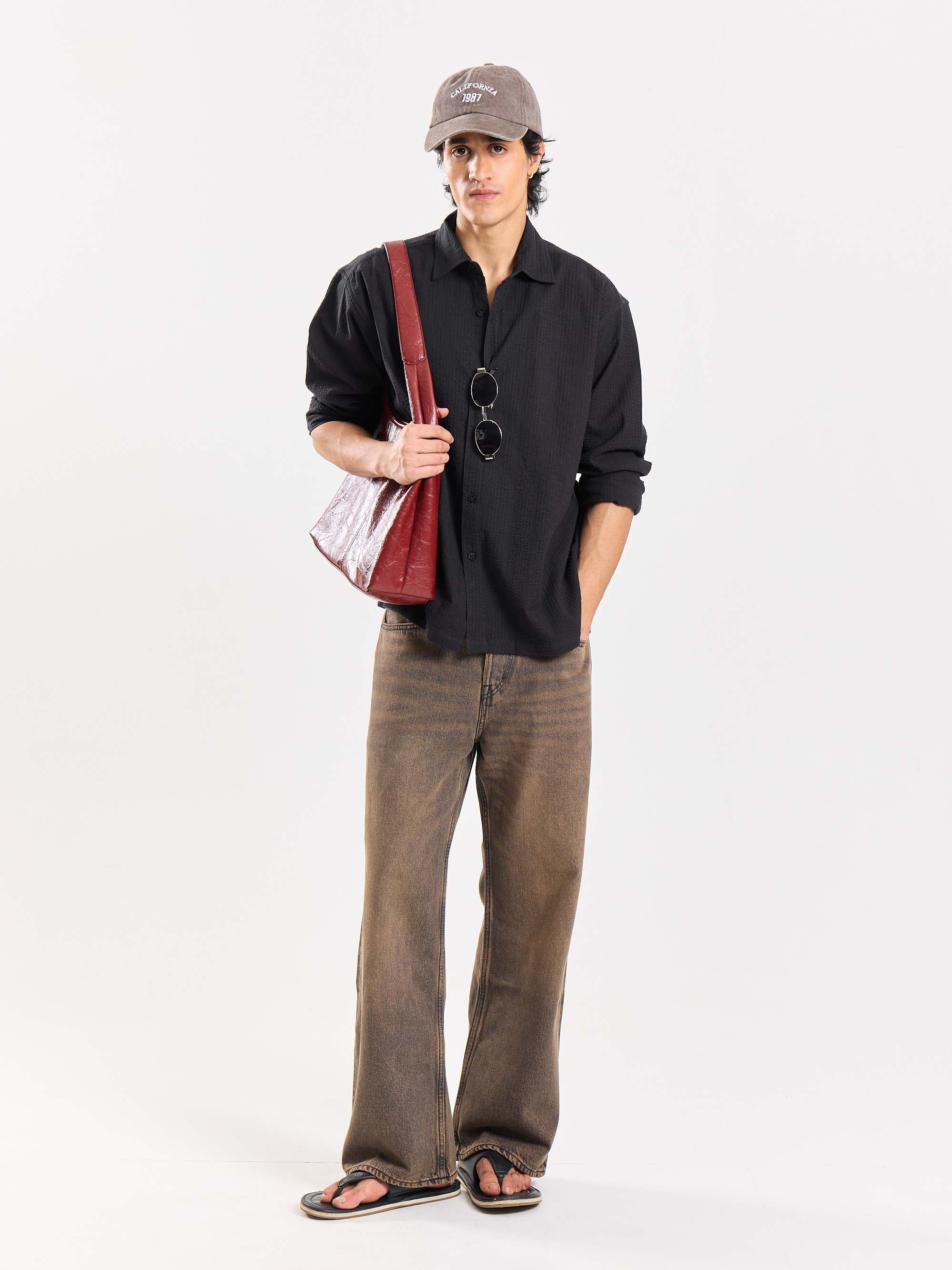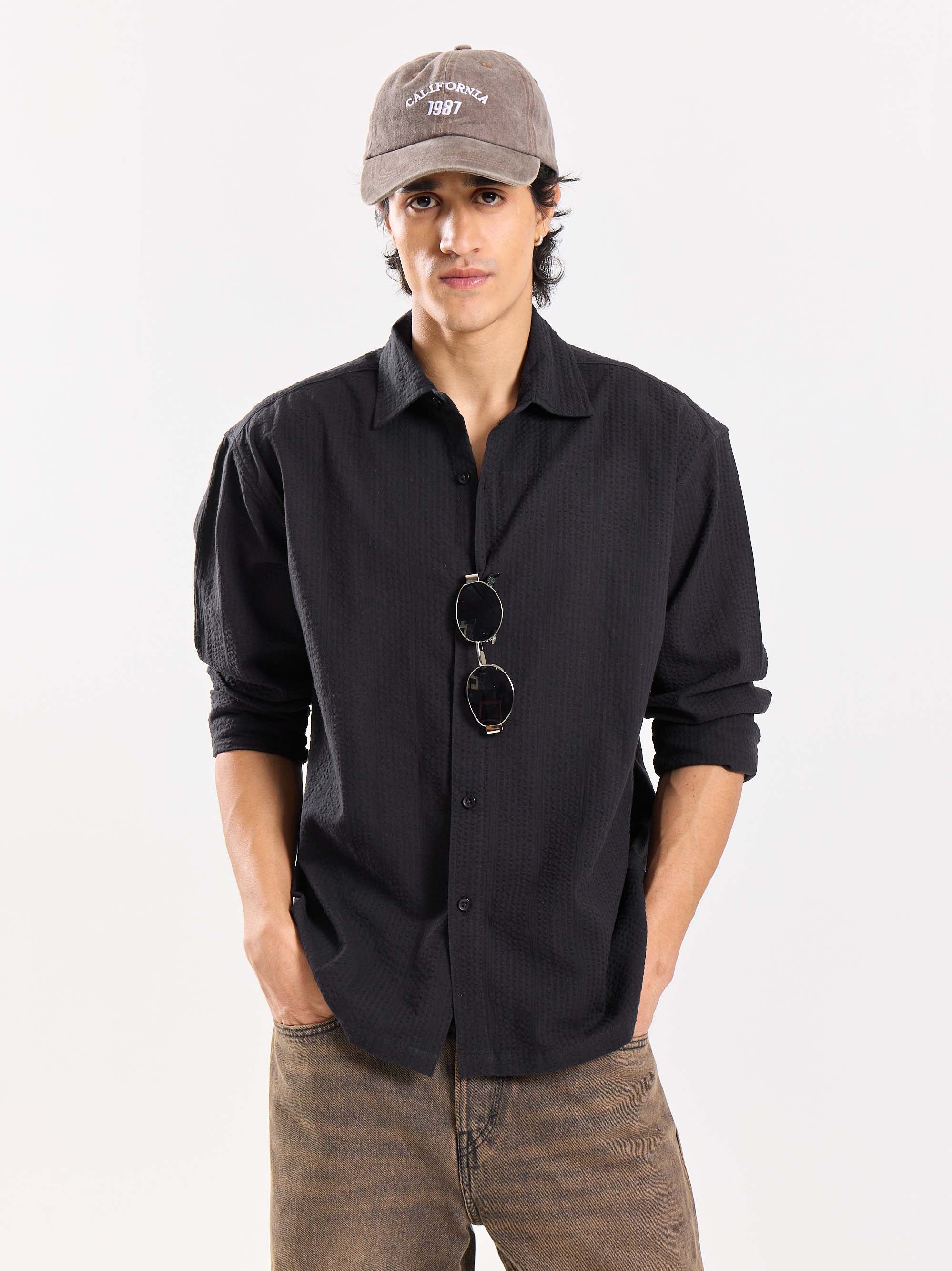 Relaxed Fit Black Textured Shirt