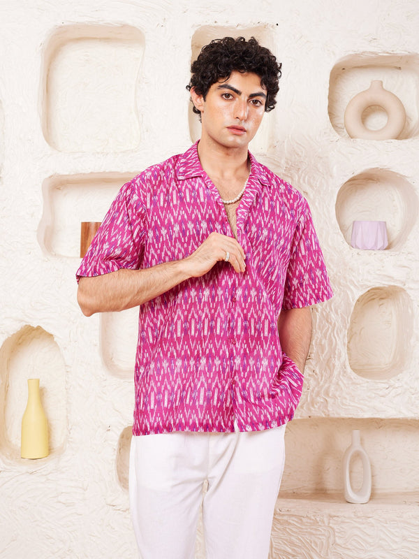 Embrace the allure of festivity and sophistication with the ‘Aarzoo’ shirt. Adorned in a mesmerizing magenta pink hue, this shirt features an ikkat-inspired print that seamlessly blends delicate white and regal purple shades. The intricate design exudes a timeless class, making it the ideal choice for any festive occasion. Let the ‘Aarzoo’ Shirt elevate your style, bringing together cultural elegance and modern sophistication, all in one exquisite piece.