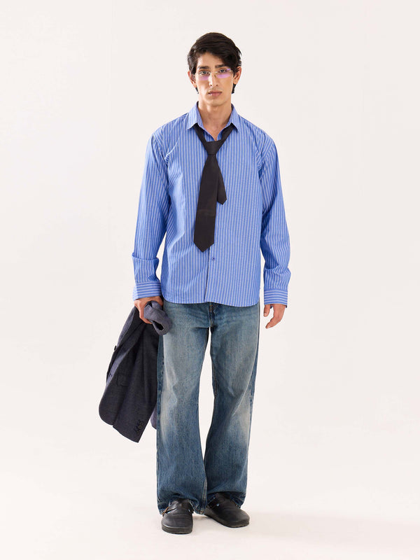 Blue Striped Poplin Shirt