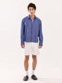 Dark Blue Striped Poplin Cropped Shirt