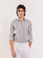 Relaxed-fit shirt in cotton-linen, a classic front, long sleeves with buttoned cuffs and a sleeve placket with a gently rounded hem.