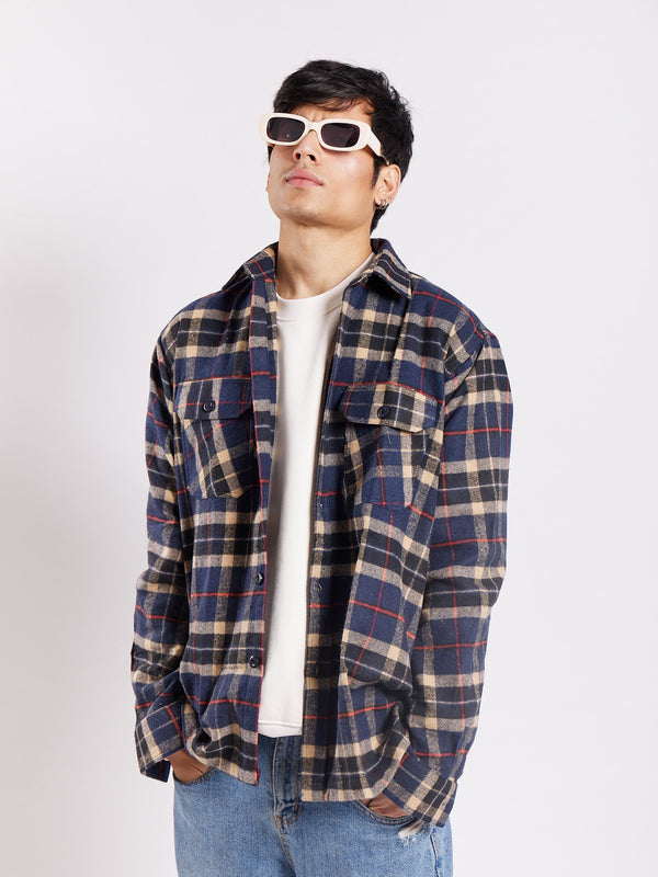 Relaxed-fit shirt jacket in soft, felted fabric with a spread collar and a classic front. Flap chest pockets, long sleeves with a sleeve placket and buttoned cuffs, and a straight-cut hem.