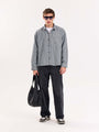 Oversized cropped fit shirt in midweight cotton with a spread collar, a classic front, and a curved hem. Low dropped shoulders, long sleeves with buttoned cuffs.