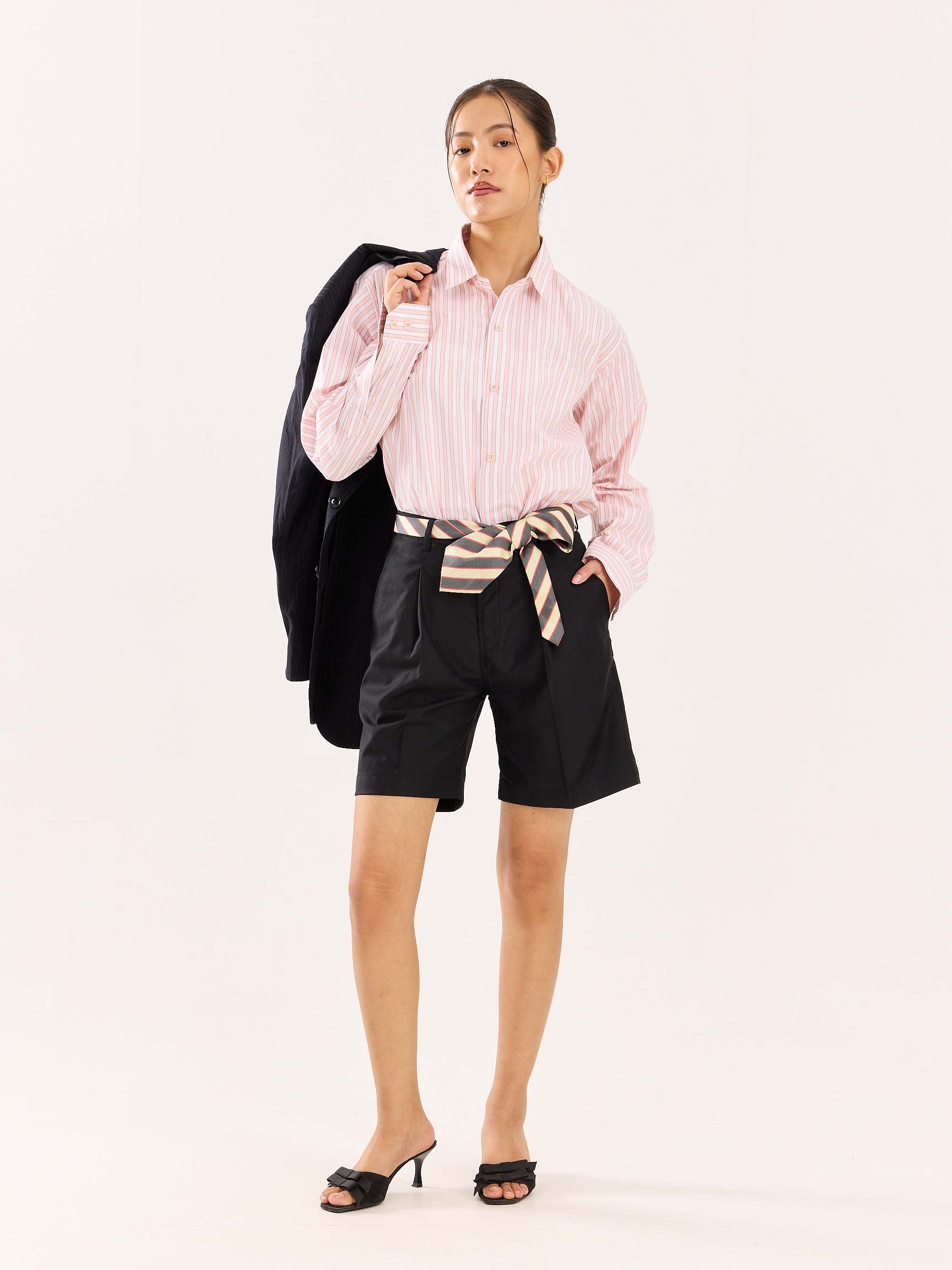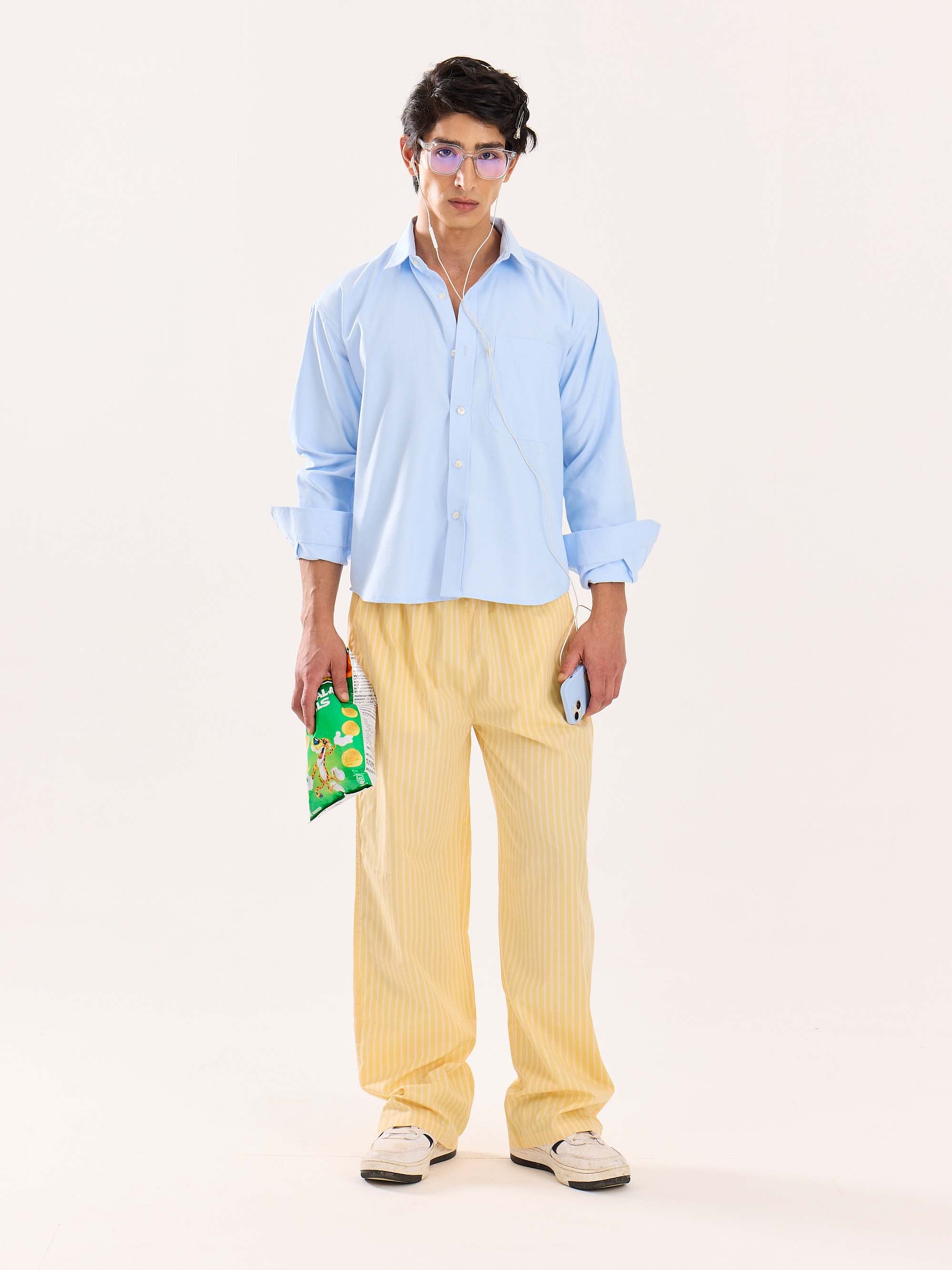Blue Striped Oversized Cropped Shirt (Pre-Order)